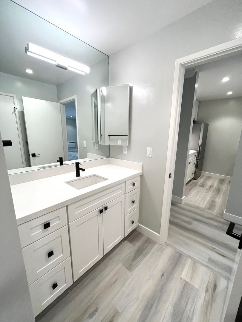 - Quartz countertop in kitchen and bathroom