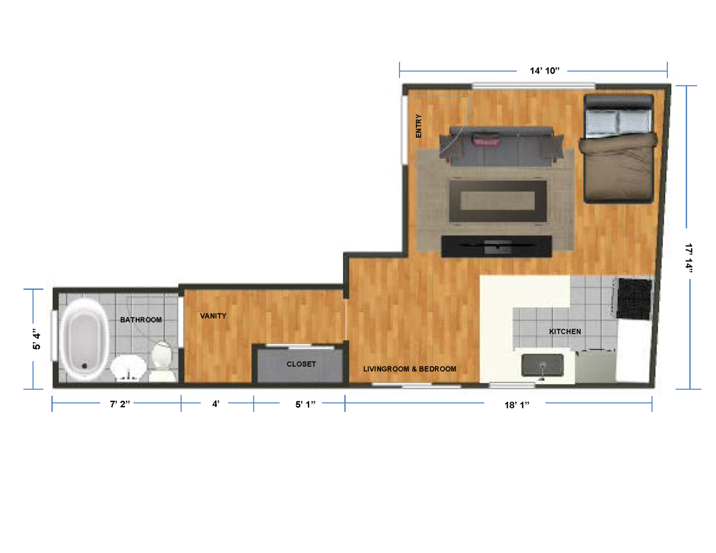 - Remodeled studio apartment