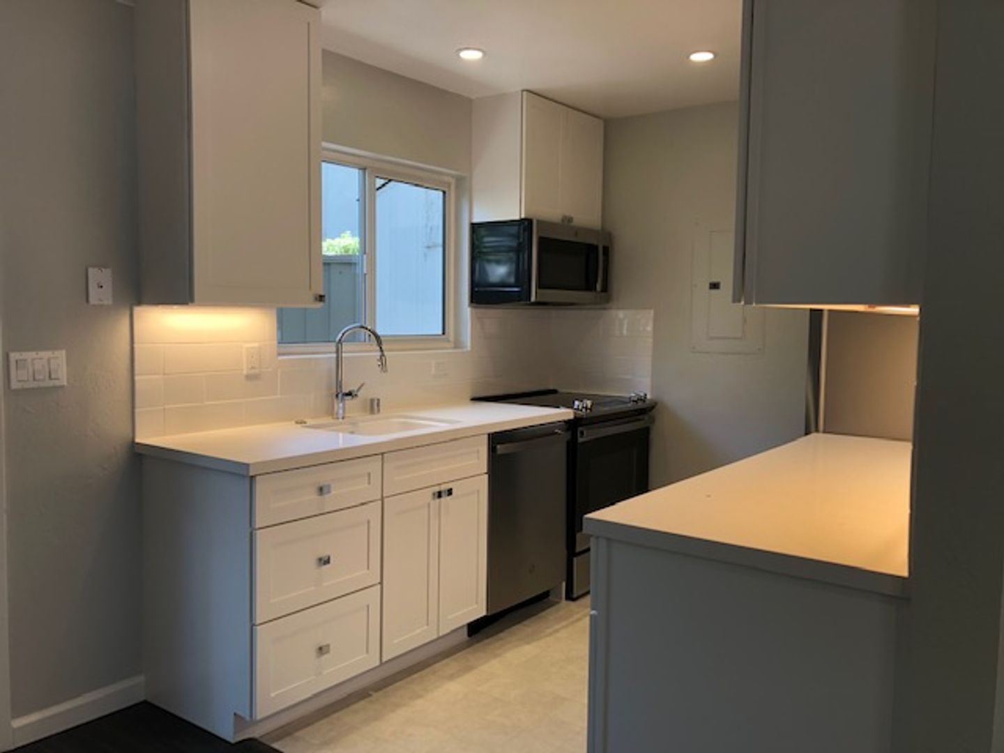 - Quartz countertop in kitchen and master bathroom