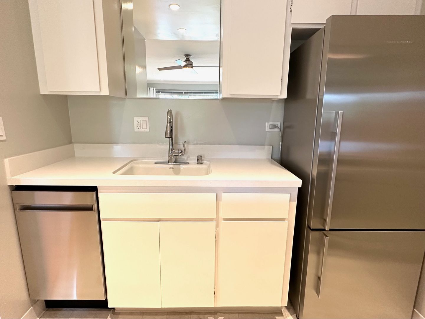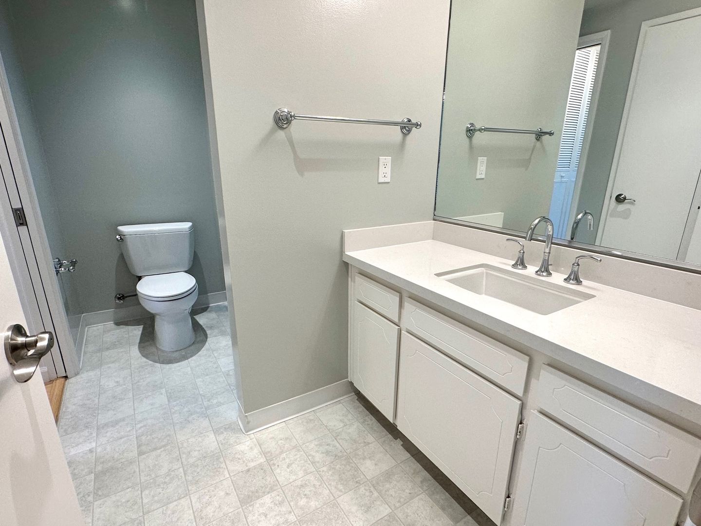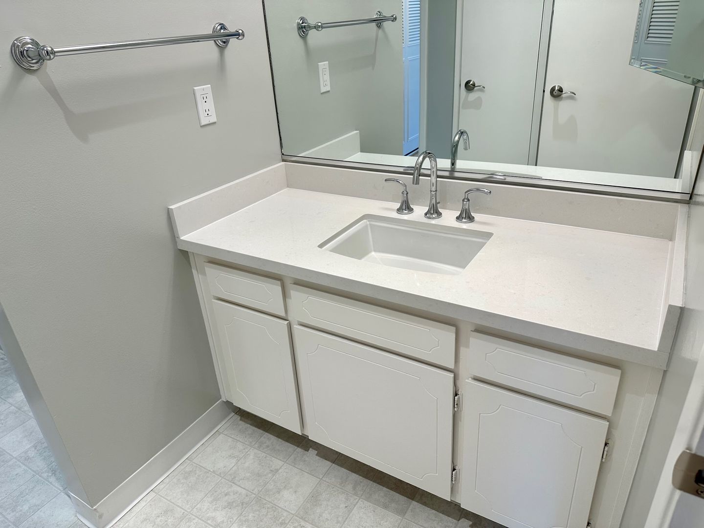 - Quartz countertop in kitchen and bathroom