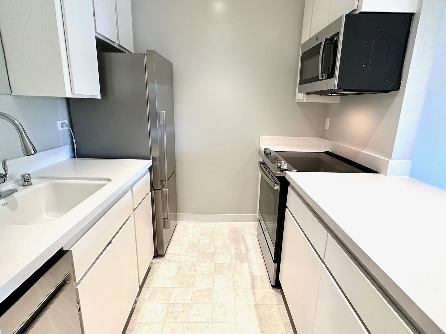 - Stainless steel appliances: Self cleaning electric range, refrigerator, dishwasher, built-in microwave