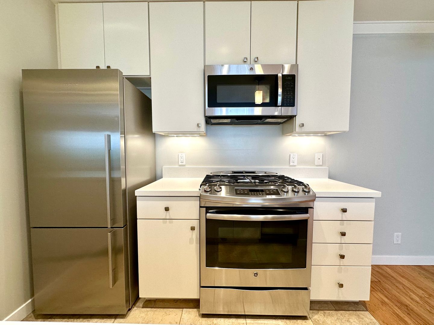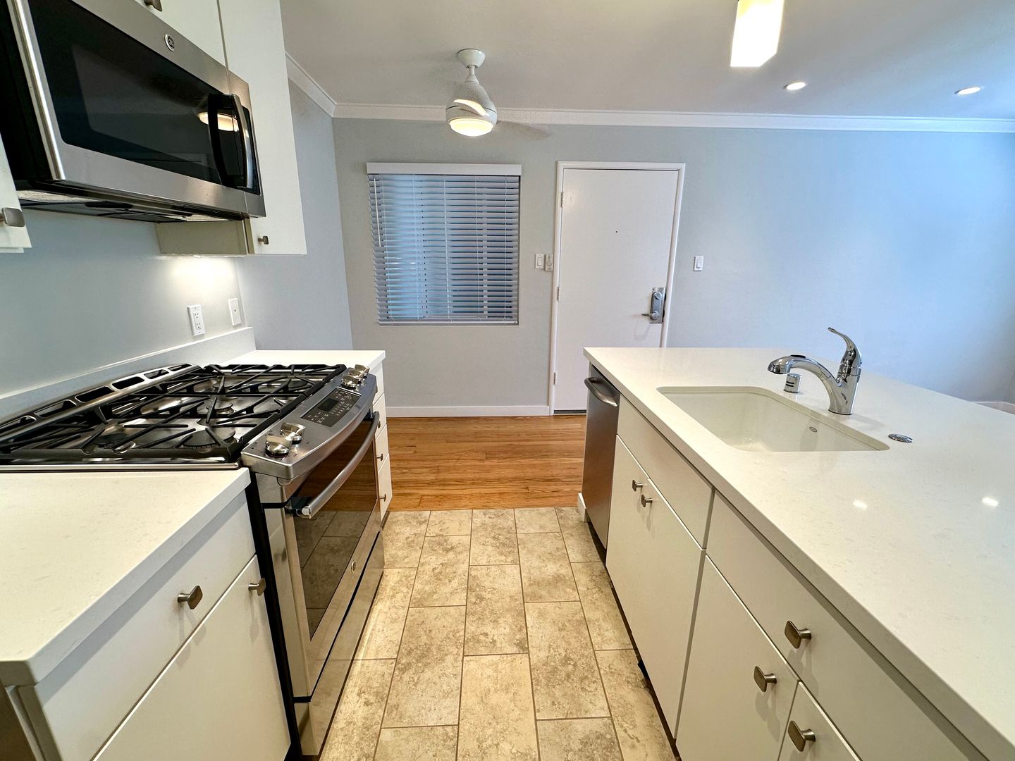 - Stainless steel appliances: Self cleaning gas range, refrigerator, dishwasher, built-in microwave