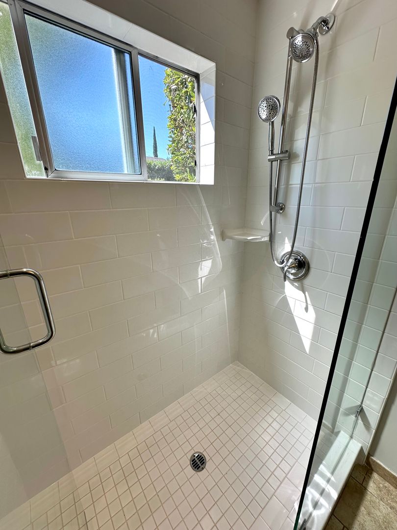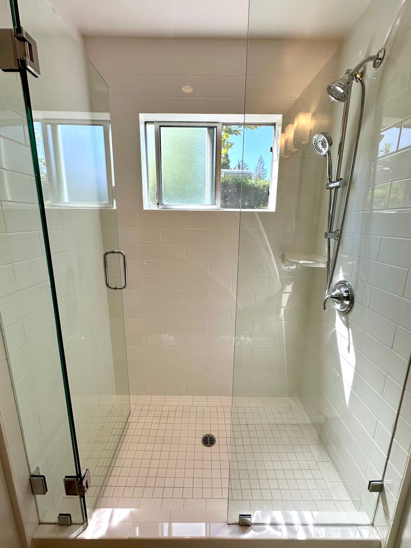 - Frameless shower enclosure