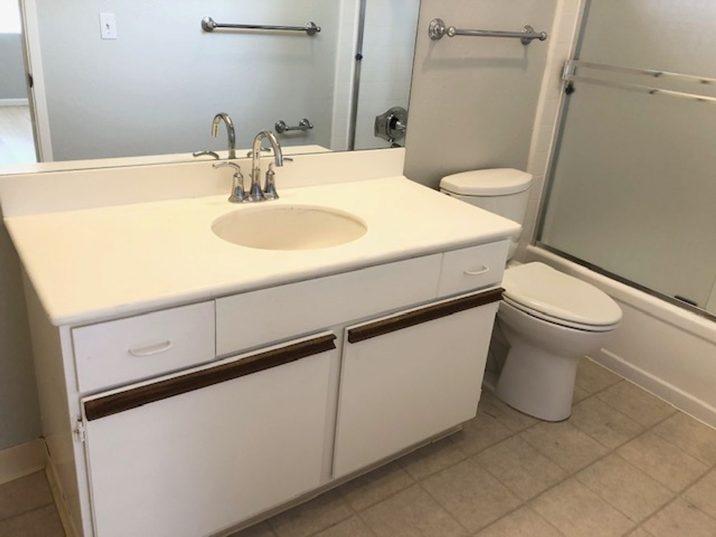 - Formica countertop in bathroom